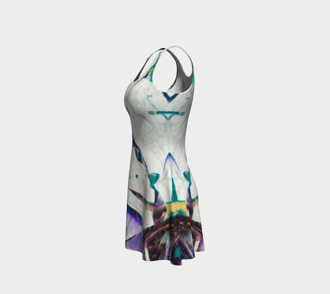 Featuring a fitted, body hugging top with a flared bottom skirt starting at the waist, this flared dress is ready to move with you from office to dance floor.